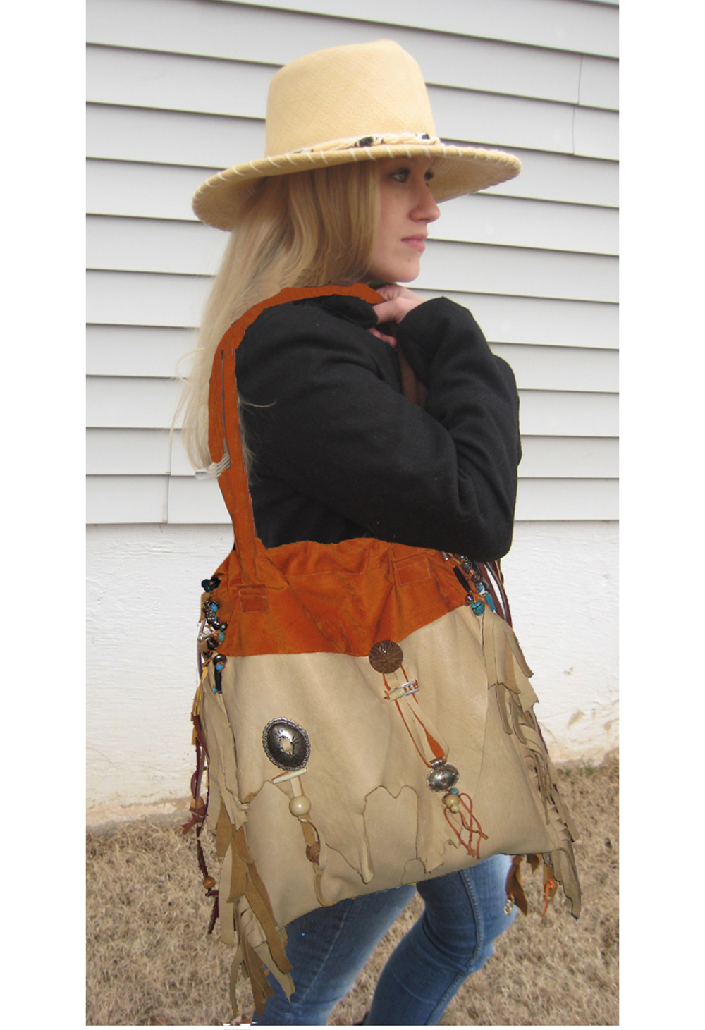 I hand made this custom made deerskin bag in vanilla cream with orange pigskin trim. the customer sent me some her favorite trimmings. It is shown on my etsy .com/shop/JohannaFashionWorld.
